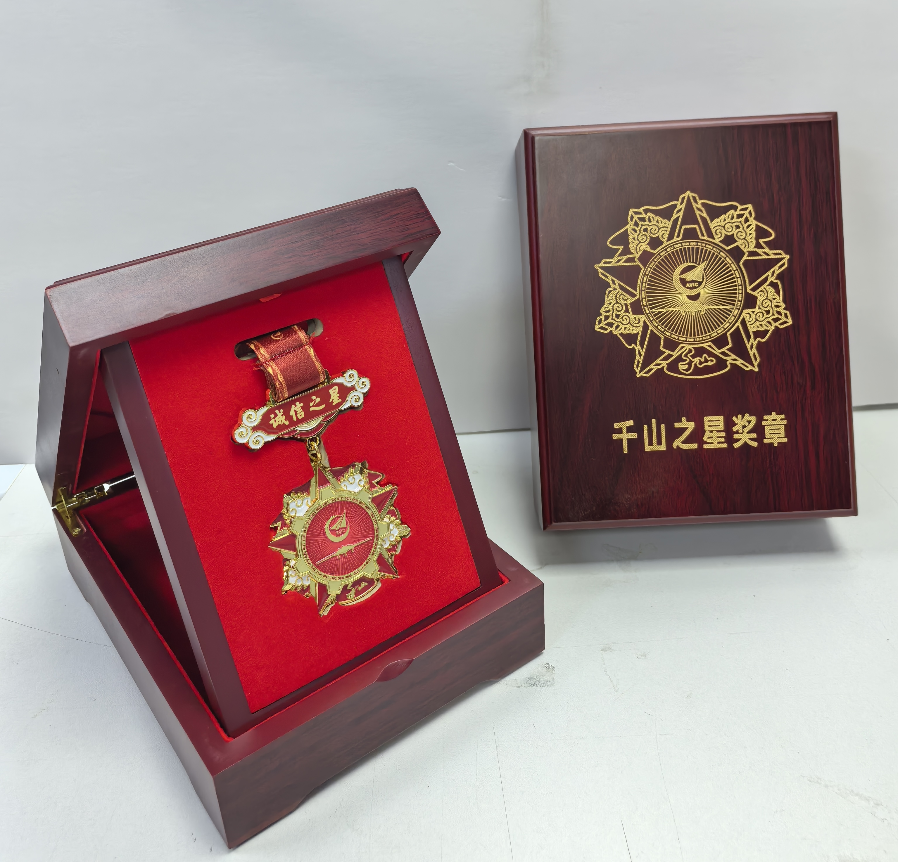 “千山之星”獎(jiǎng)?wù)拢ㄟ^(guò)我司和客戶兩個(gè)月的設(shè)計(jì)優(yōu)化,最終章體通徑55毫米,寓意千山建廠55周年;19組數(shù)據(jù)代碼、69根光芒射線、4枚盾牌、7個(gè)齒輪,寓意千山于1969年4月7日正式建廠。